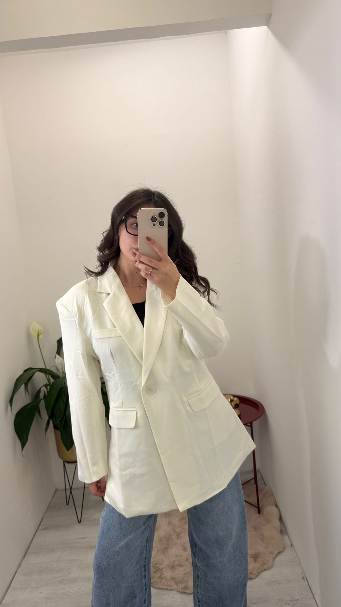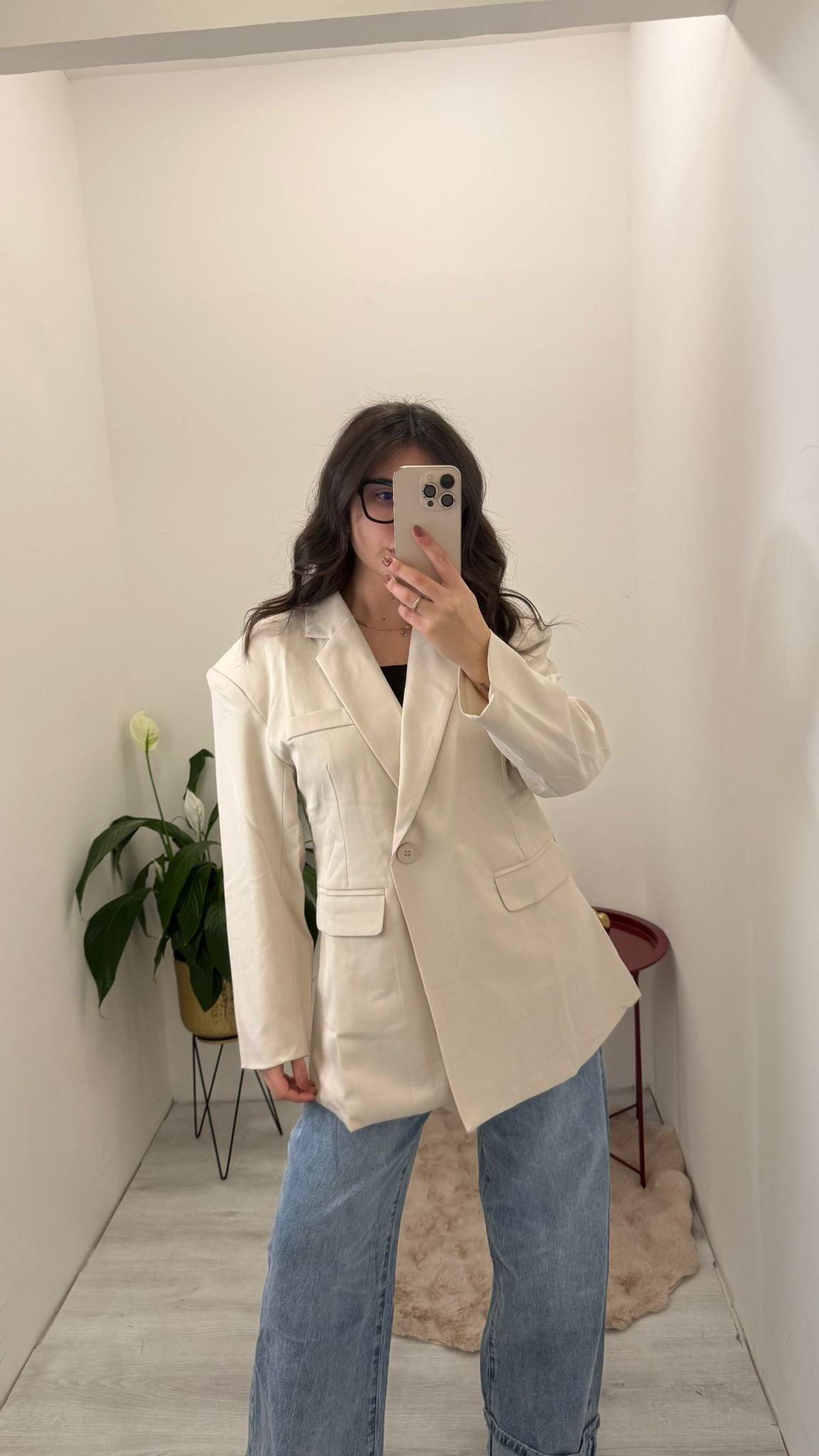 Blazer dal taglio moderno e raffinato, perfetto per aggiungere un tocco elegante e contemporaneo a qualsiasi outfit. Realizzato con linea leggermente oversize, presenta spalle strutturate che valorizzano la silhouette e donano carattere al look. Il design monopetto con bottone frontale è completato da revers classici e tasche con patta, dettagli che richiamano uno stile sartoriale ma versatile.
