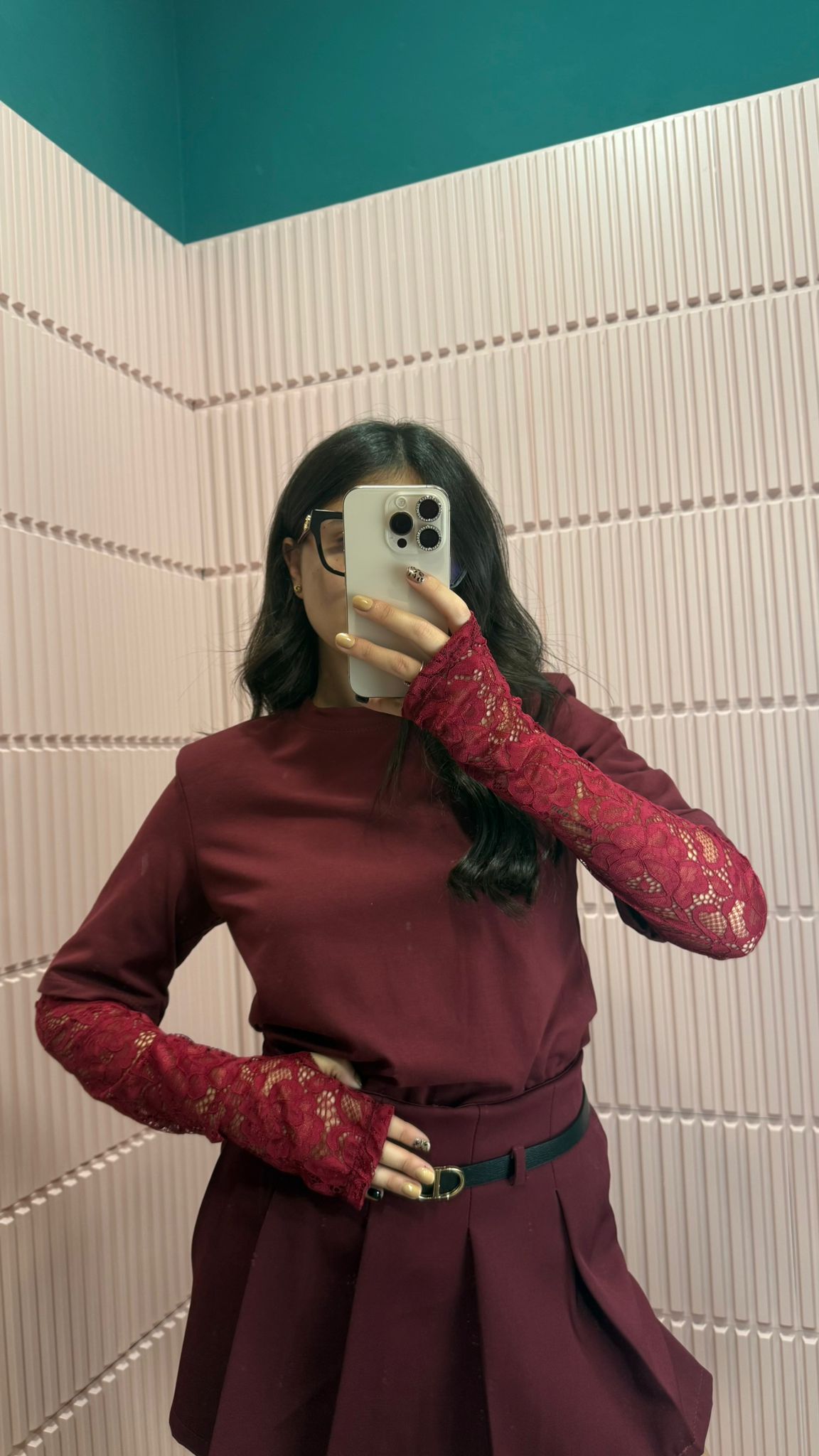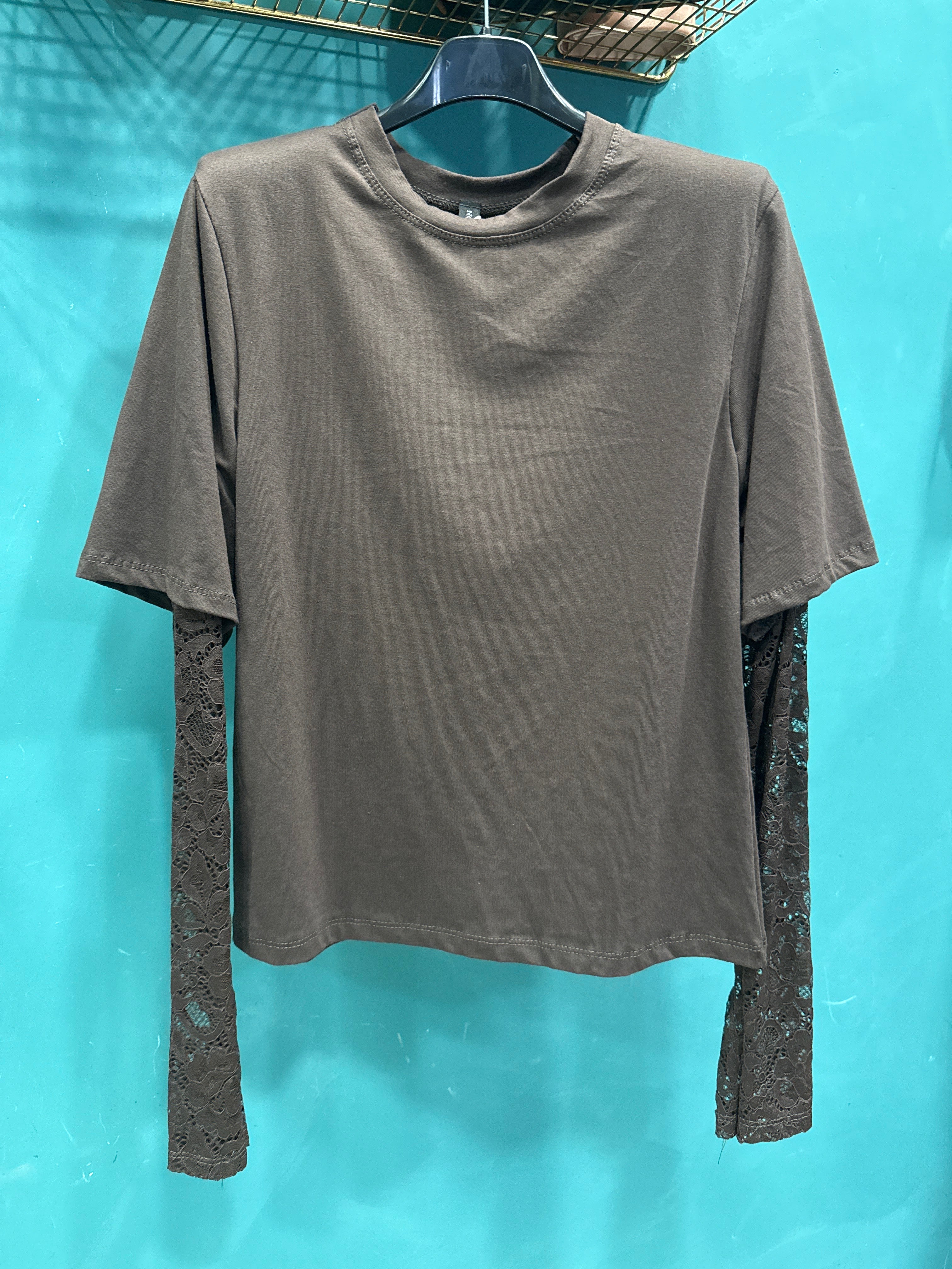 Maglia elegante in tonalità bordeaux, caratterizzata da un design sofisticato con maniche lunghe in pizzo floreale trasparente che aggiungono un tocco romantico e femminile. Il corpo in tessuto liscio offre una vestibilità comoda e strutturata, perfetta per valorizzare la figura. Ideale da abbinare a gonne o pantaloni a vita alta per creare outfit raffinati e versatili, adatti sia a occasioni speciali che a look più quotidiani con un tocco chic.