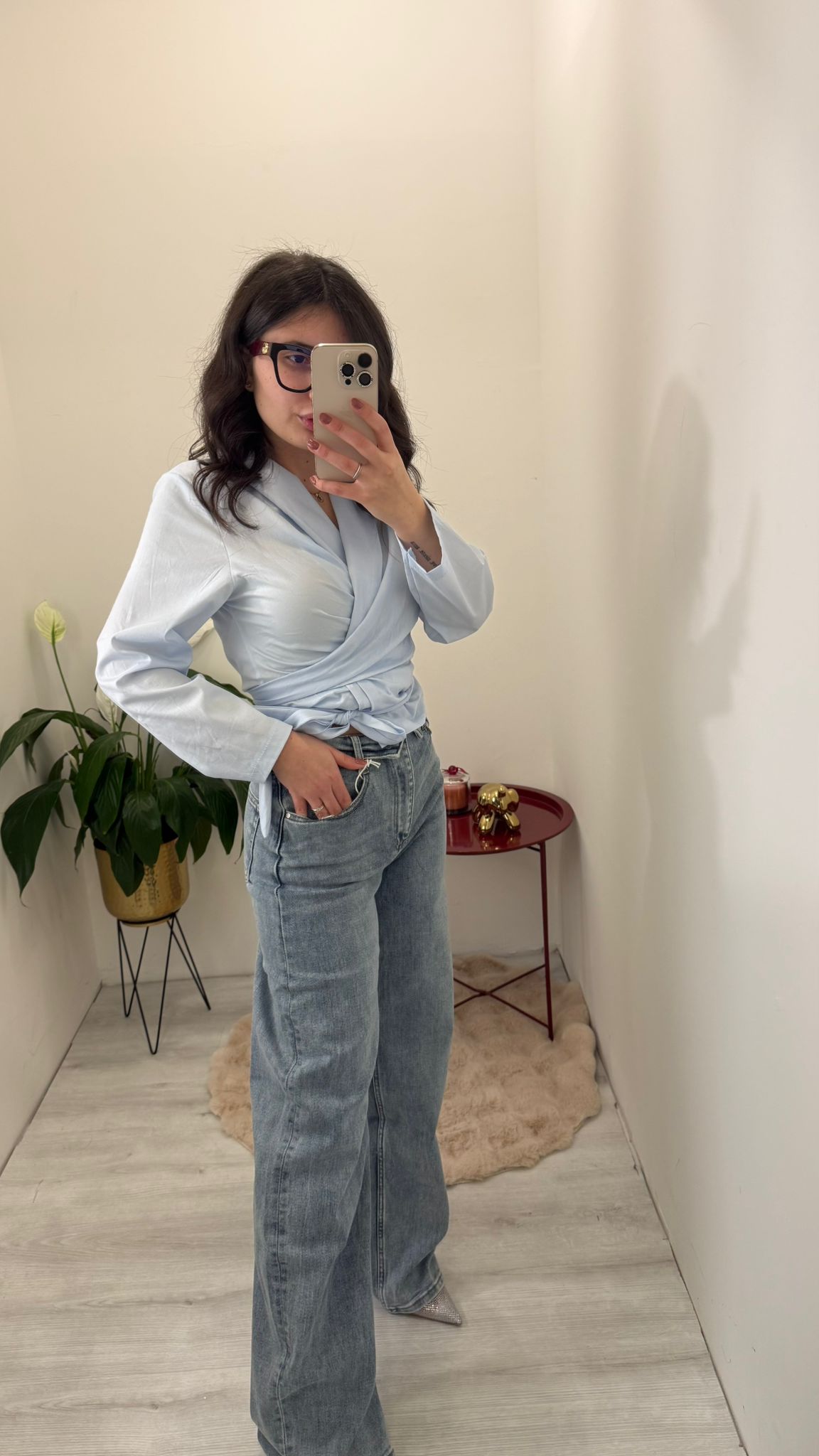 Jeans dal taglio wide leg con vita alta e vestibilità rilassata, perfetti per creare look contemporanei e versatili. Il lavaggio denim chiaro dona un effetto casual e luminoso, ideale da abbinare sia a camicie eleganti che a top più essenziali.