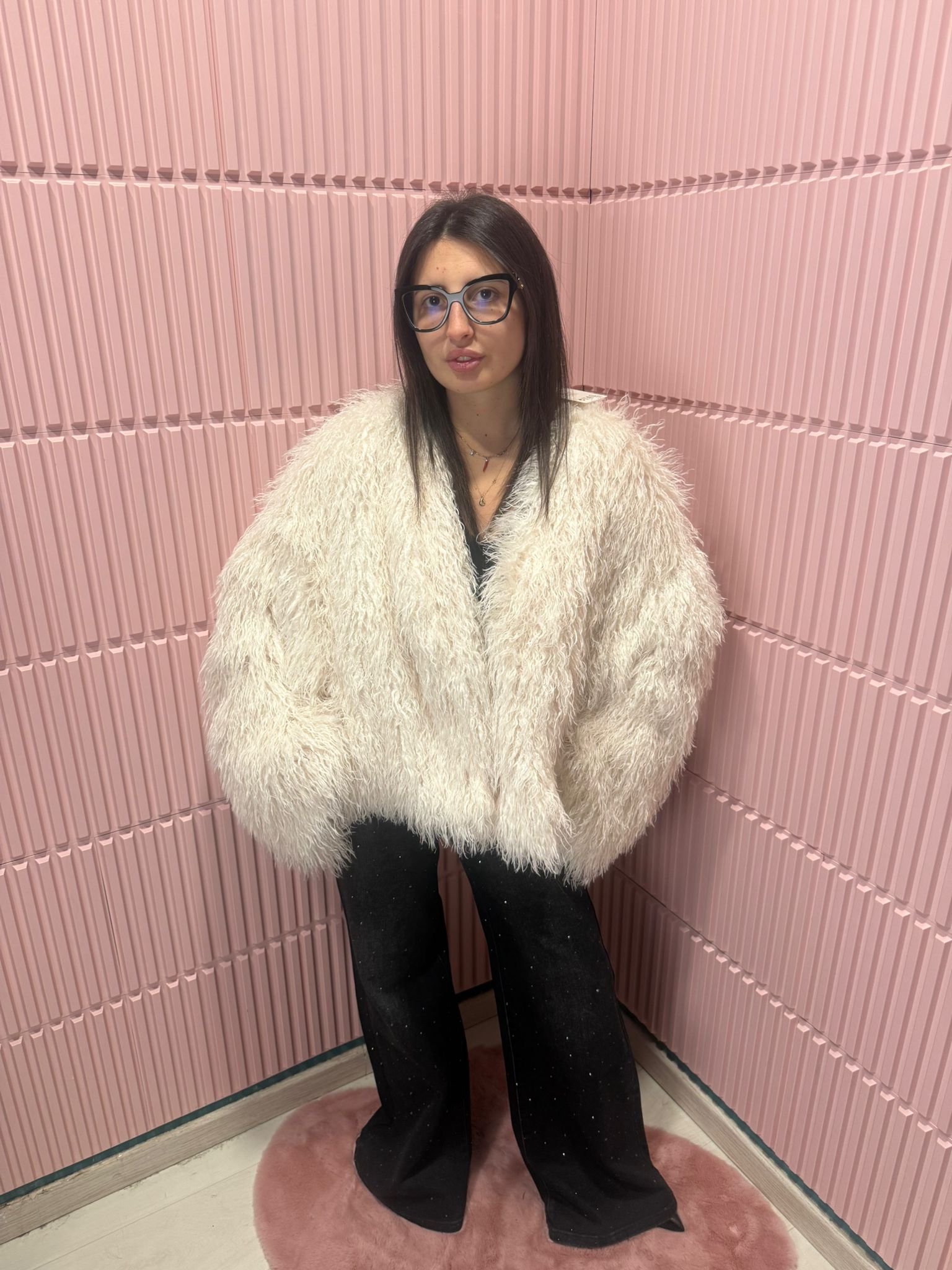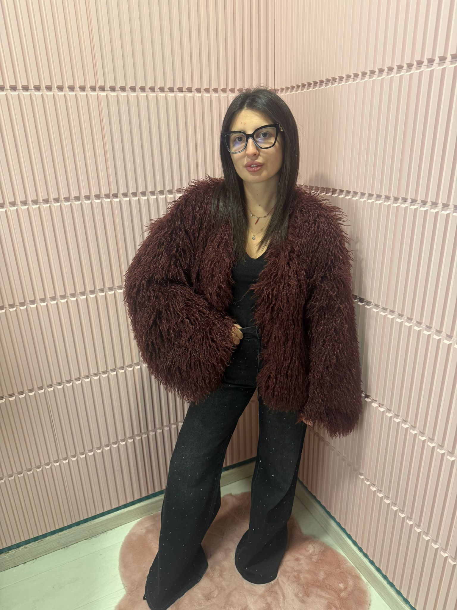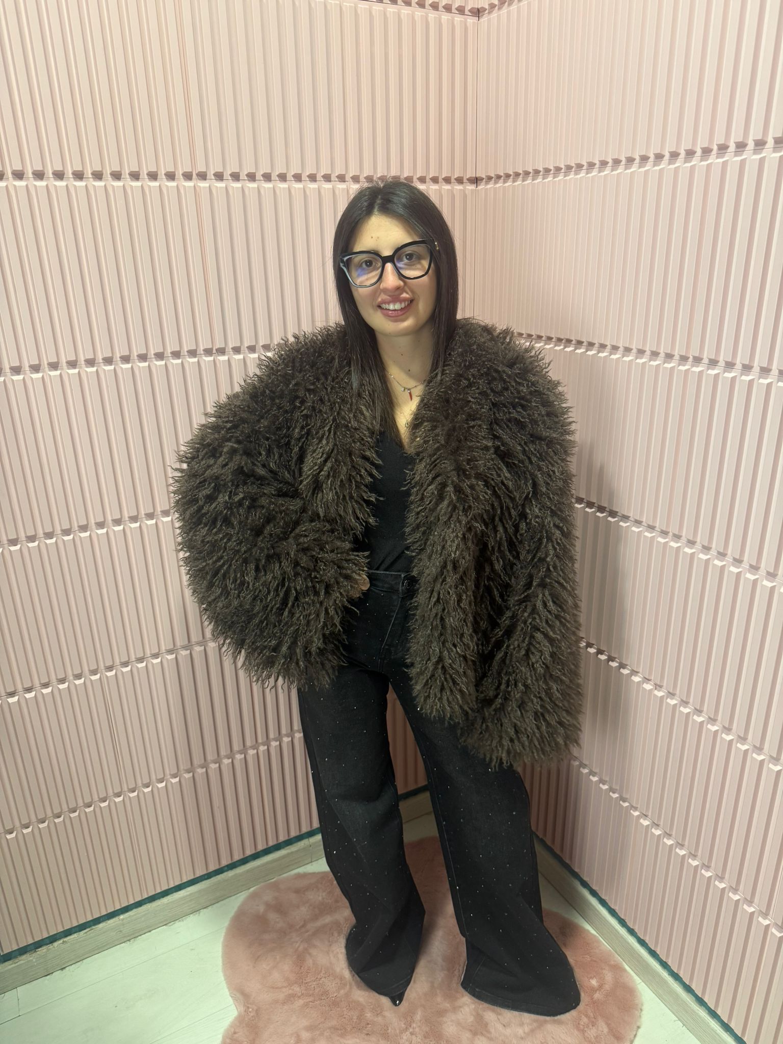 Pelliccia dallo stile voluminoso e avvolgente, perfetta per aggiungere carattere e calore ai look invernali. Il modello presenta un design morbido e soffice, con effetto shaggy che dona un aspetto ricco e fashion. La tonalità marrone scura la rende facilmente abbinabile a outfit sia casual che più ricercati.