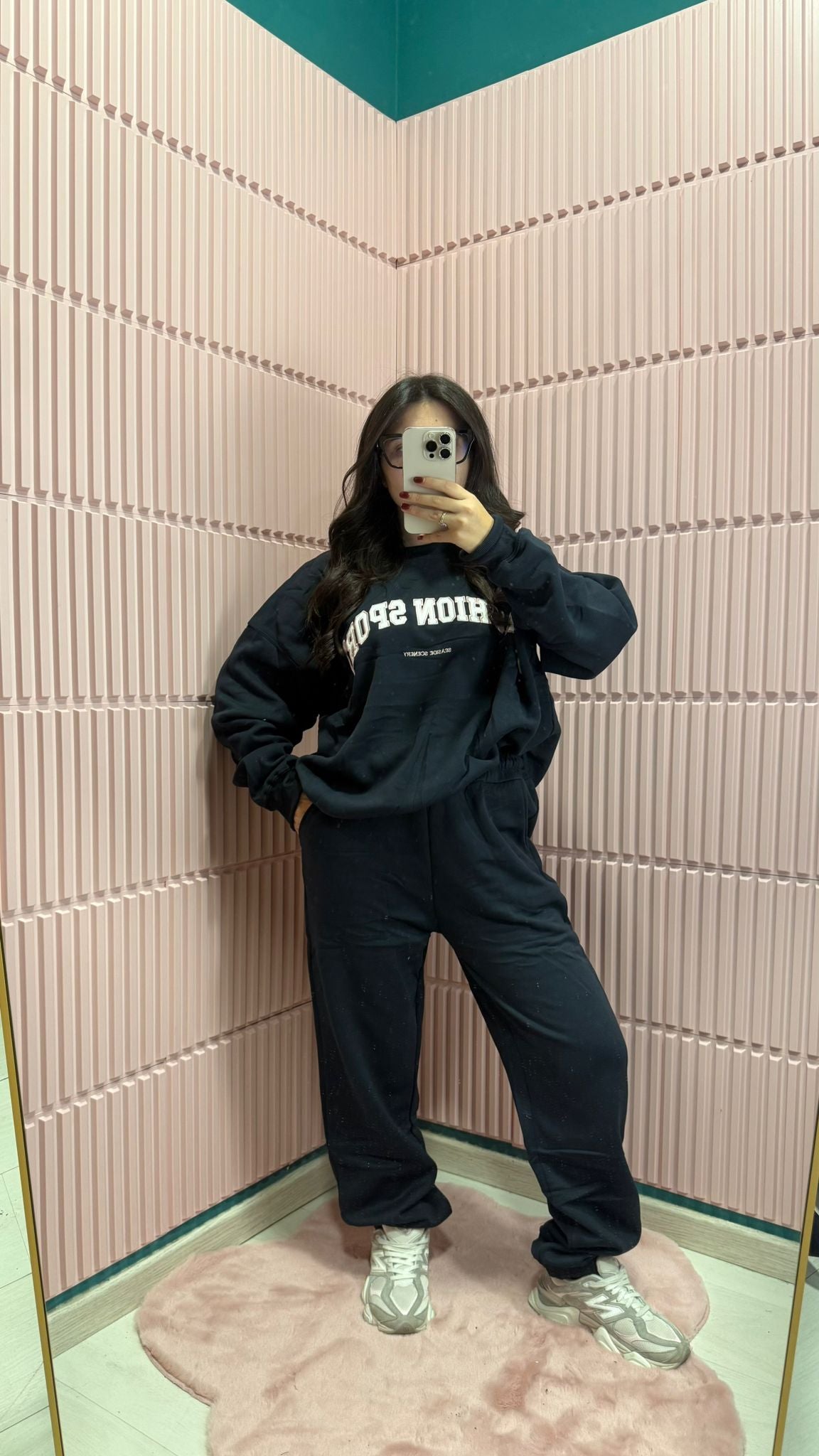 tuta felpata oversize con polsino alla caviglia con stampa in rilievo sul petto